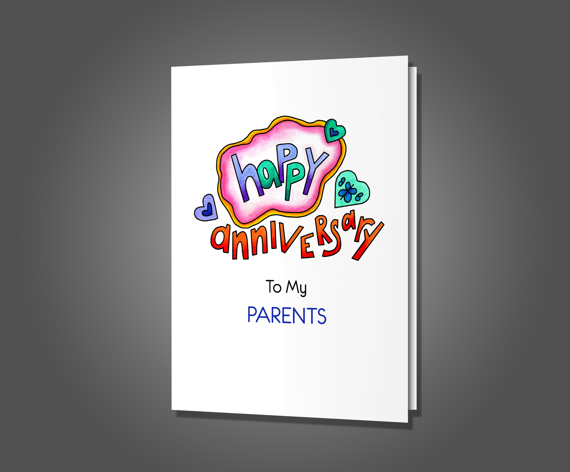 INSIDE WORDING: I'm gay and it's both your fault. Hope your anniversary is just as great as my childhood