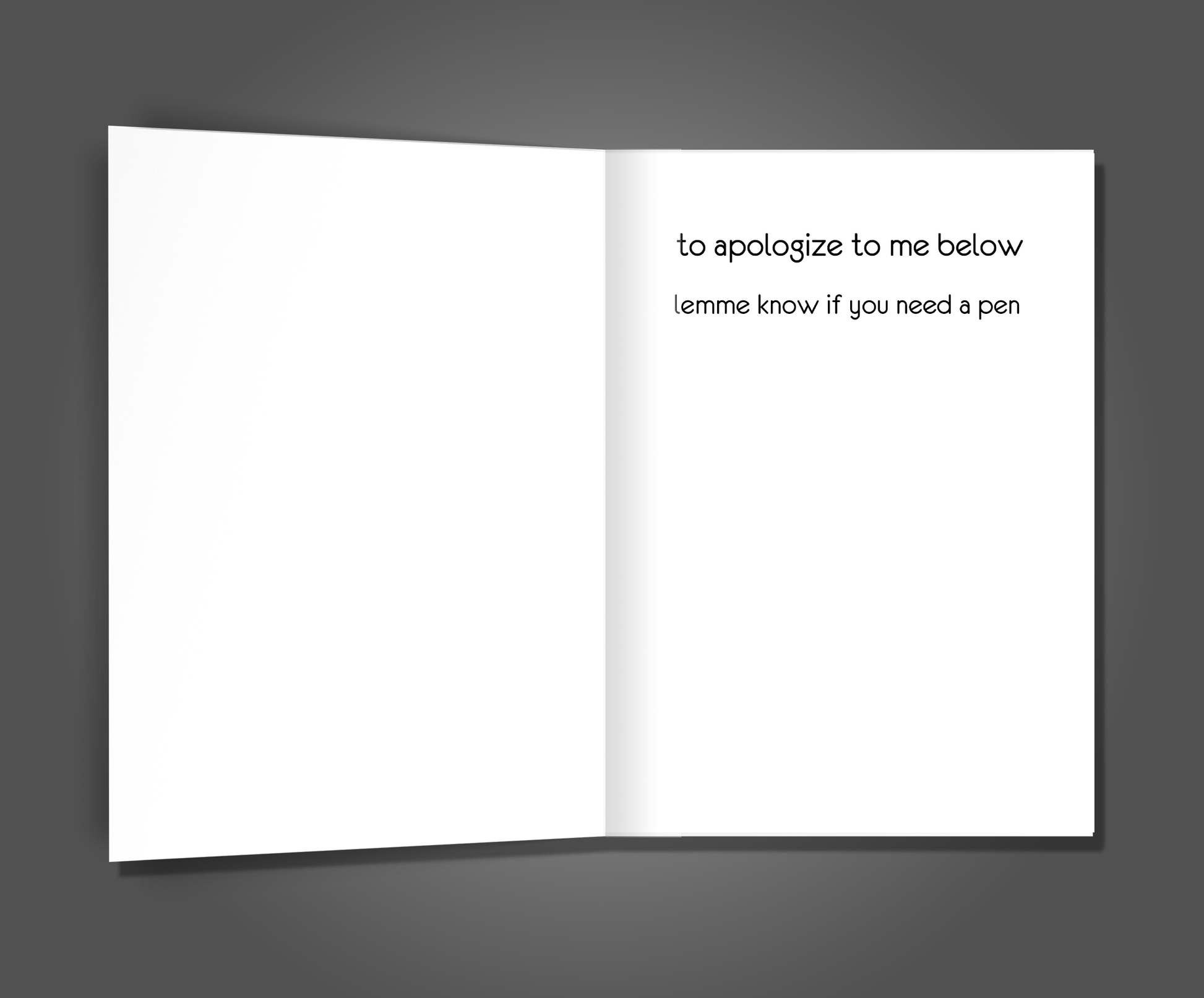 INSIDE WORDING: to apologize to me below. Lemme know if you need a pen
