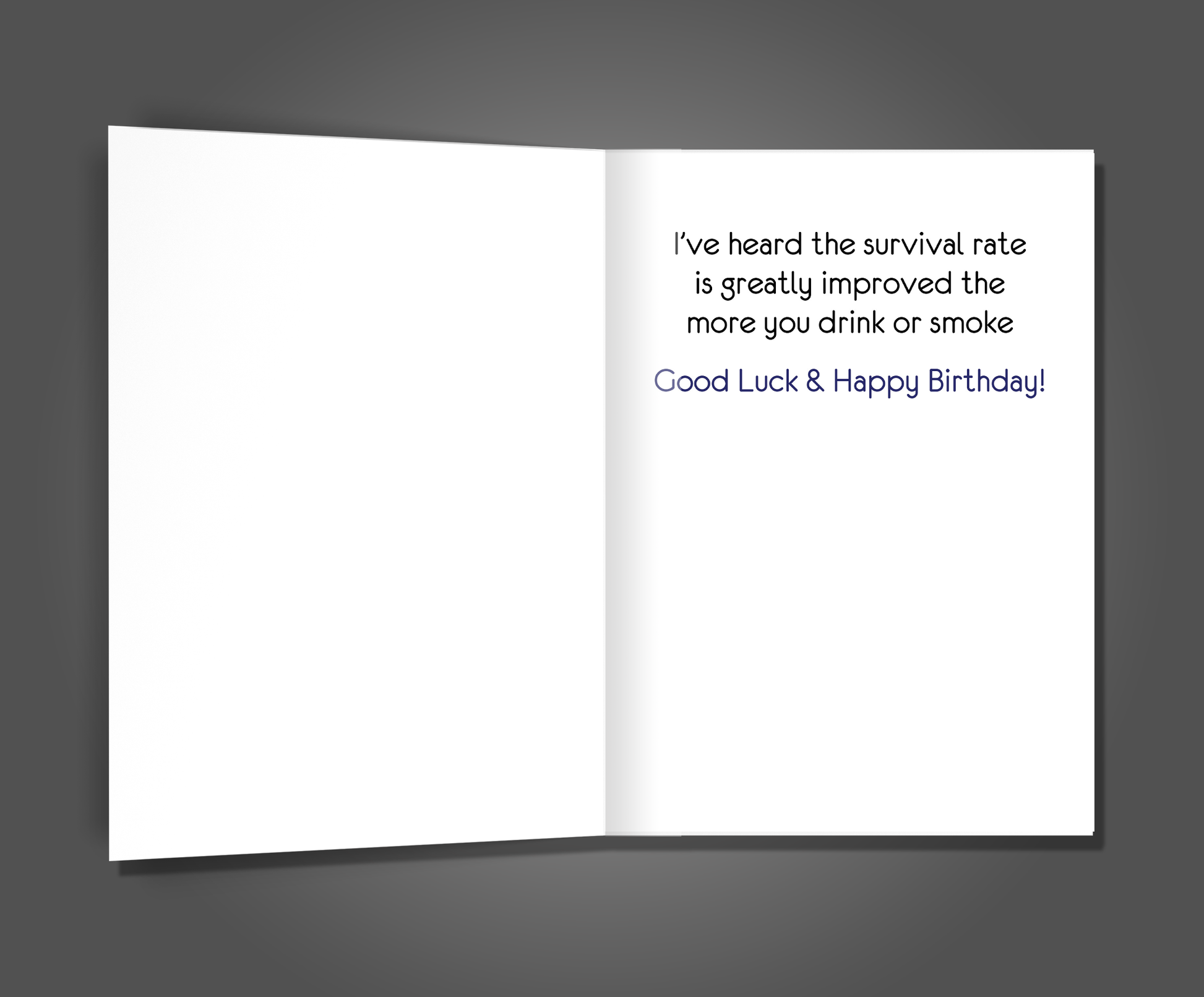 INSIDE WORDING: I've heard the survival rate is greatly improved the more you drink or smoke. Good Luck & Happy Birthday!