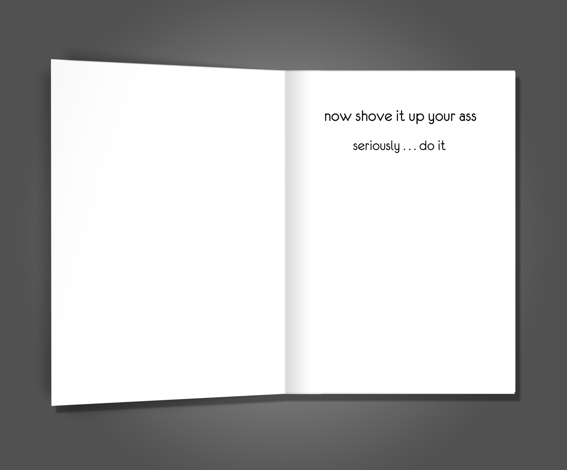 INSIDE WORDING:Â now shove it up your ass. seriously . . . do it