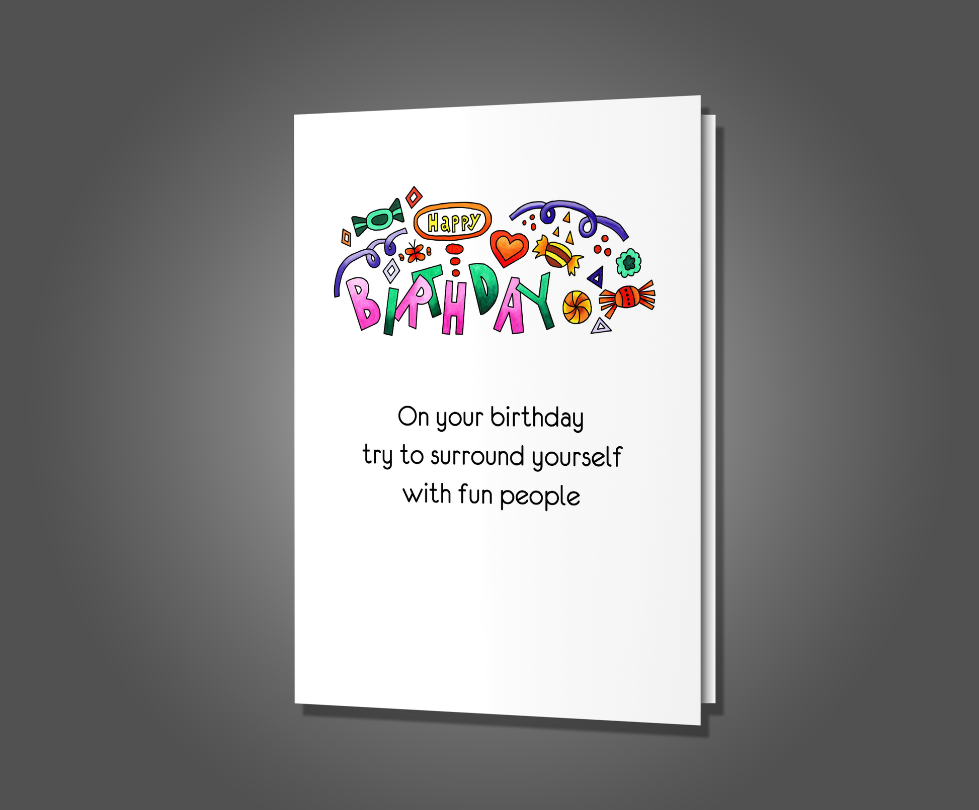 INSIDE WORDING:Â Fun ugly people. So you won't be the ugliest person in the room. Happy Birthday!