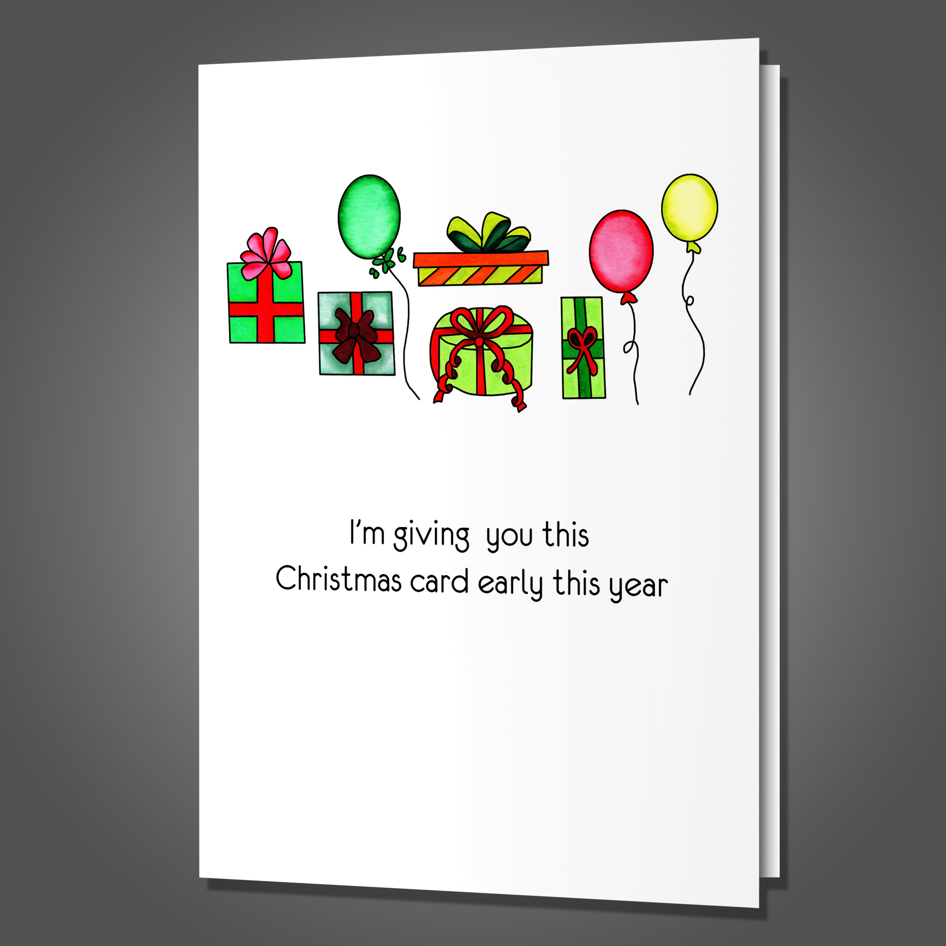 DETAILS: Hand-drawn, painted with watercolors and digitally edited greeting card for that person in your life that can take a joke and doesn’t take life too seriously. Or if you simply want a card to cut through the bullshit of sappy cheesy alternatives.