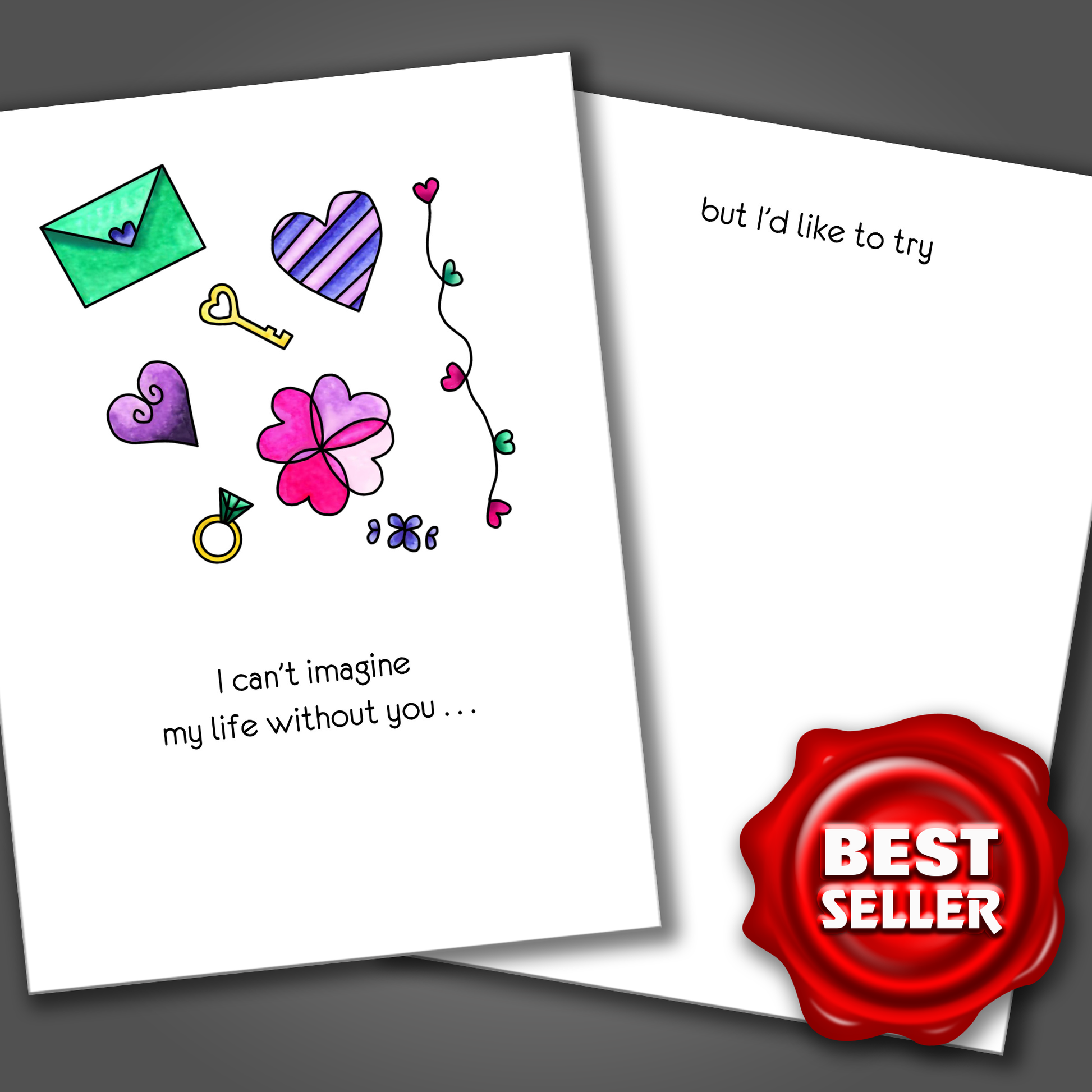 DETAILS: Hand-drawn, painted with watercolors and digitally edited greeting card for that person in your life that can take a joke and doesn’t take life too seriously. Or if you simply want a card to cut through the bullshit of sappy cheesy alternatives.