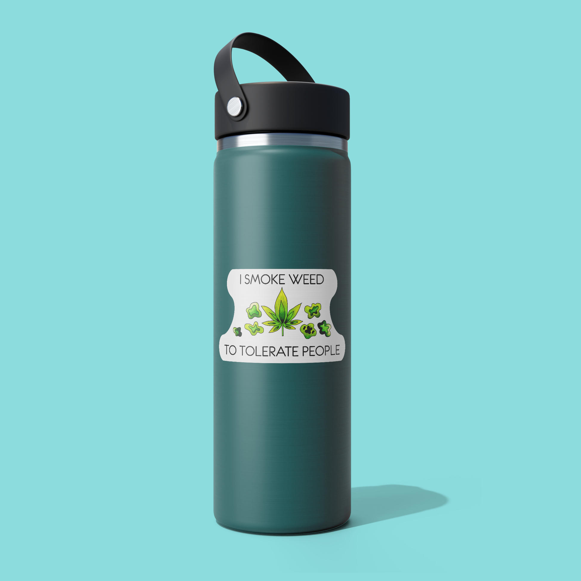 Smoke Weed to Tolerate People STICKER - Funny Sarcastic Vinyl Sticker for Laptop, Phone and More
