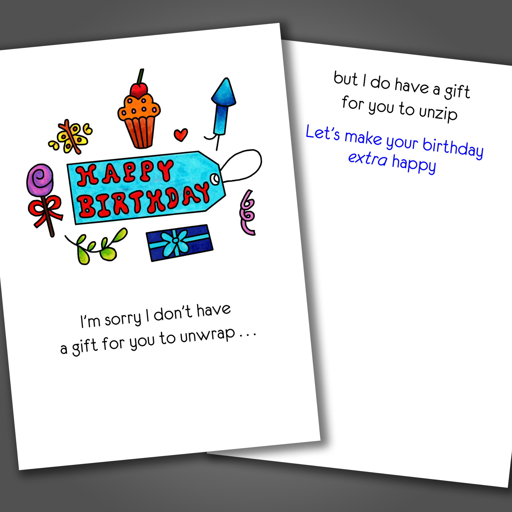 INSIDE WORDING: but I do have a gift for you to unzip. Let's make your birthday extra happy