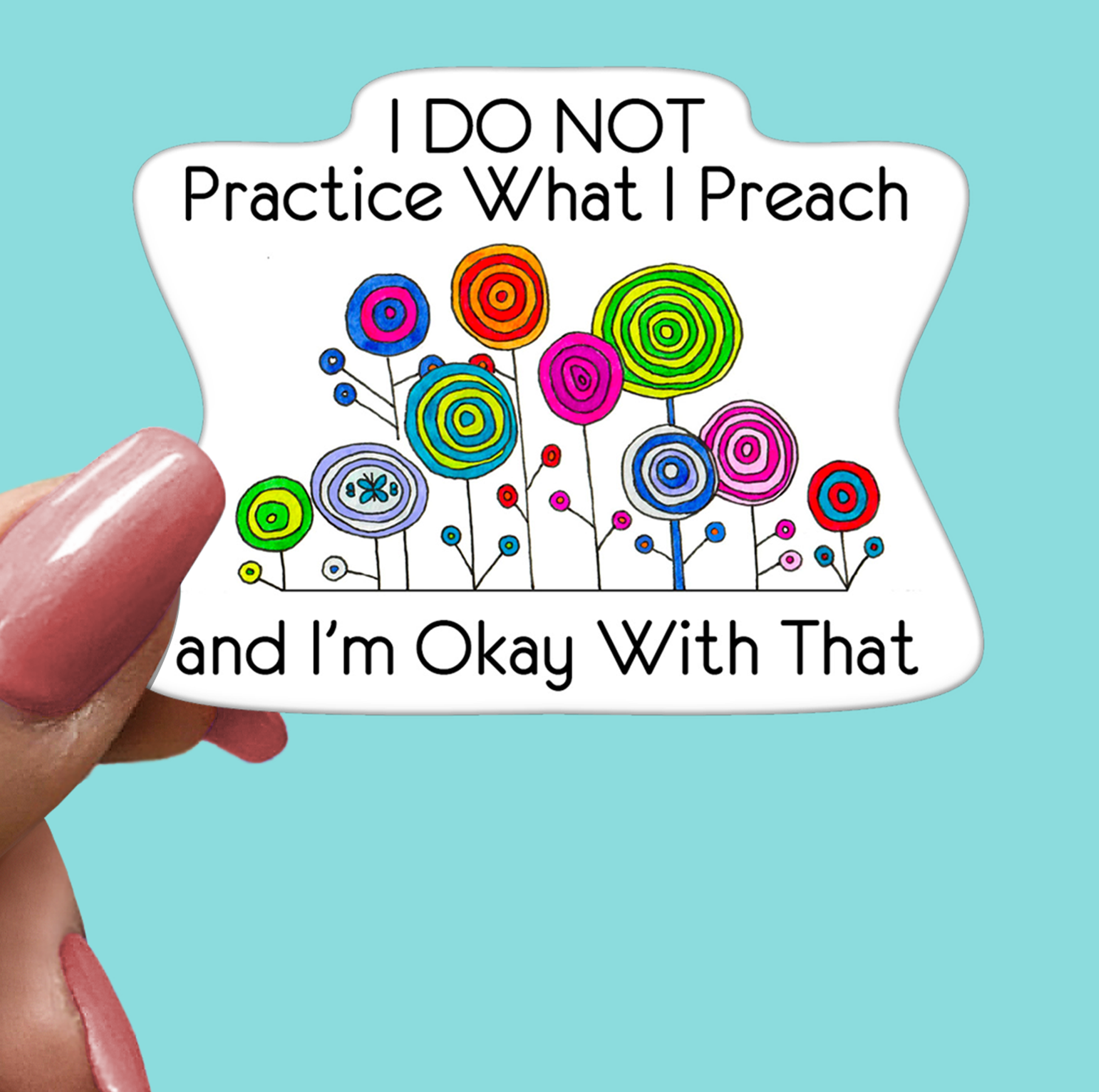 I Don't Practice What I Preach STICKER - Funny Sarcastic Vinyl Sticker for Laptop, Phone and More