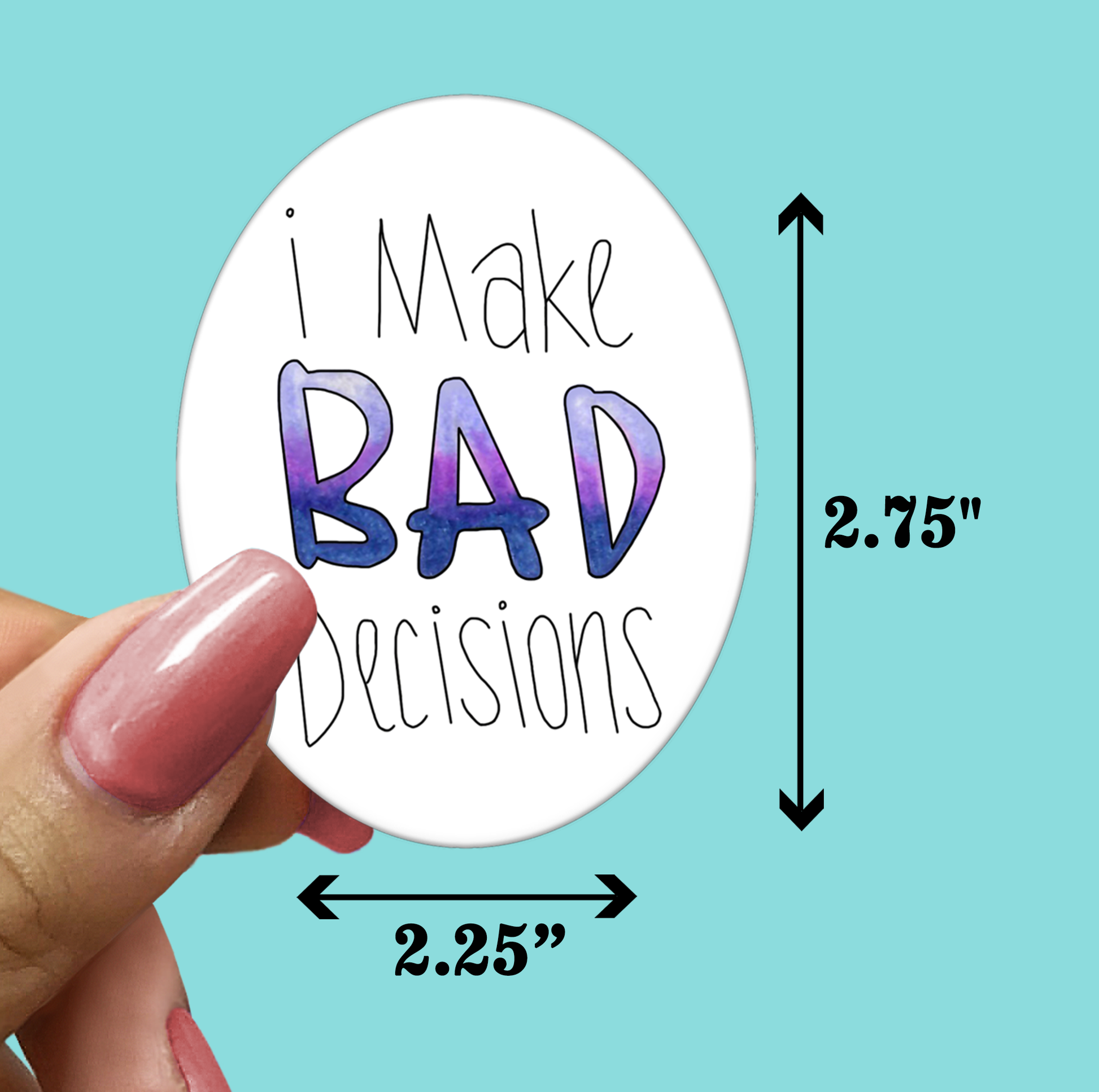 I Make Bad Decisions - STICKER - Funny Sarcastic Vinyl Sticker for Laptop, Phone and More