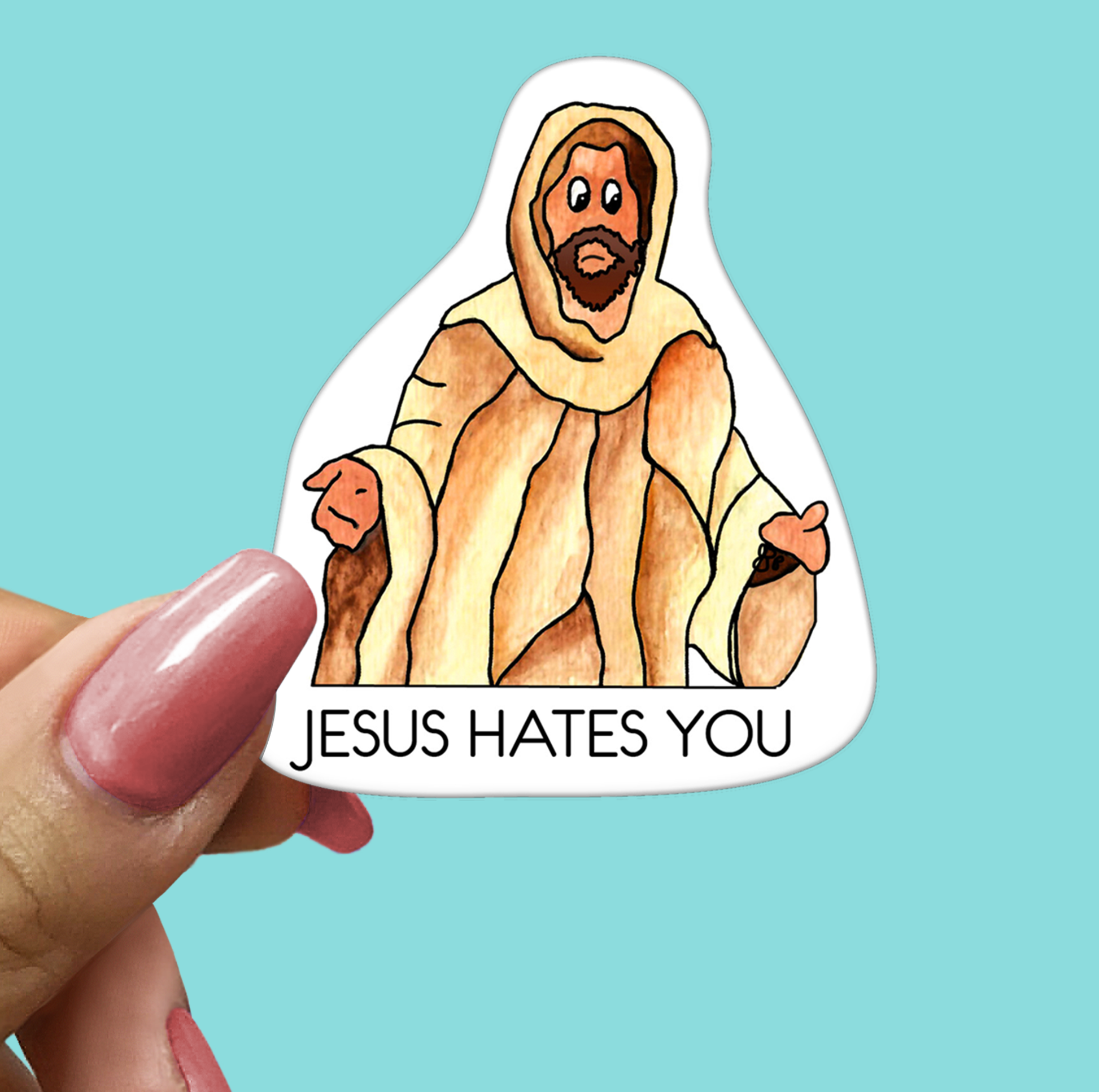 Jesus Hates You STICKER - Funny Sarcastic Vinyl Sticker for Laptop, Phone and More