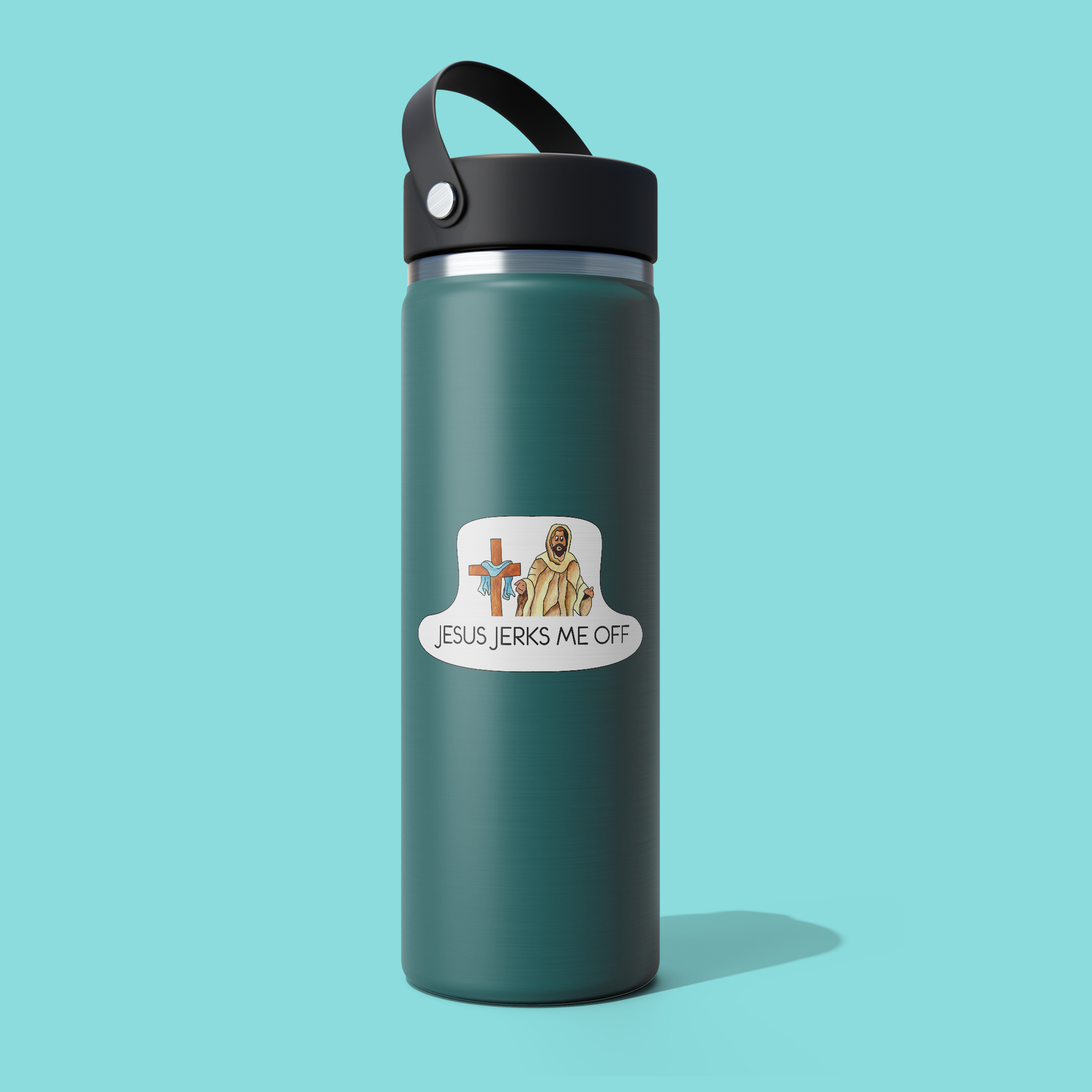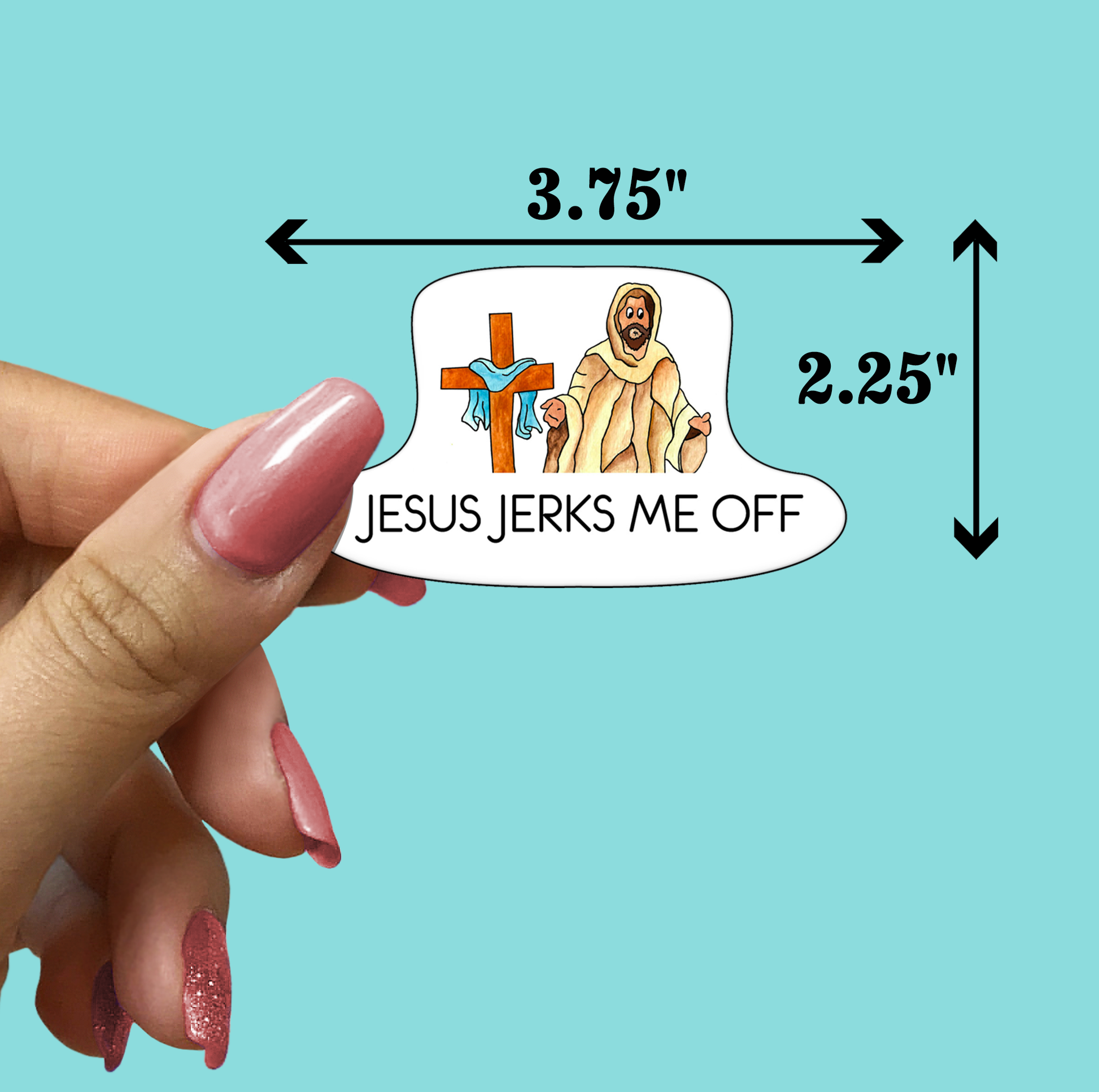 Jesus Jerks Me Off STICKER - Funny Sarcastic Vinyl Sticker for Laptop, Phone and More