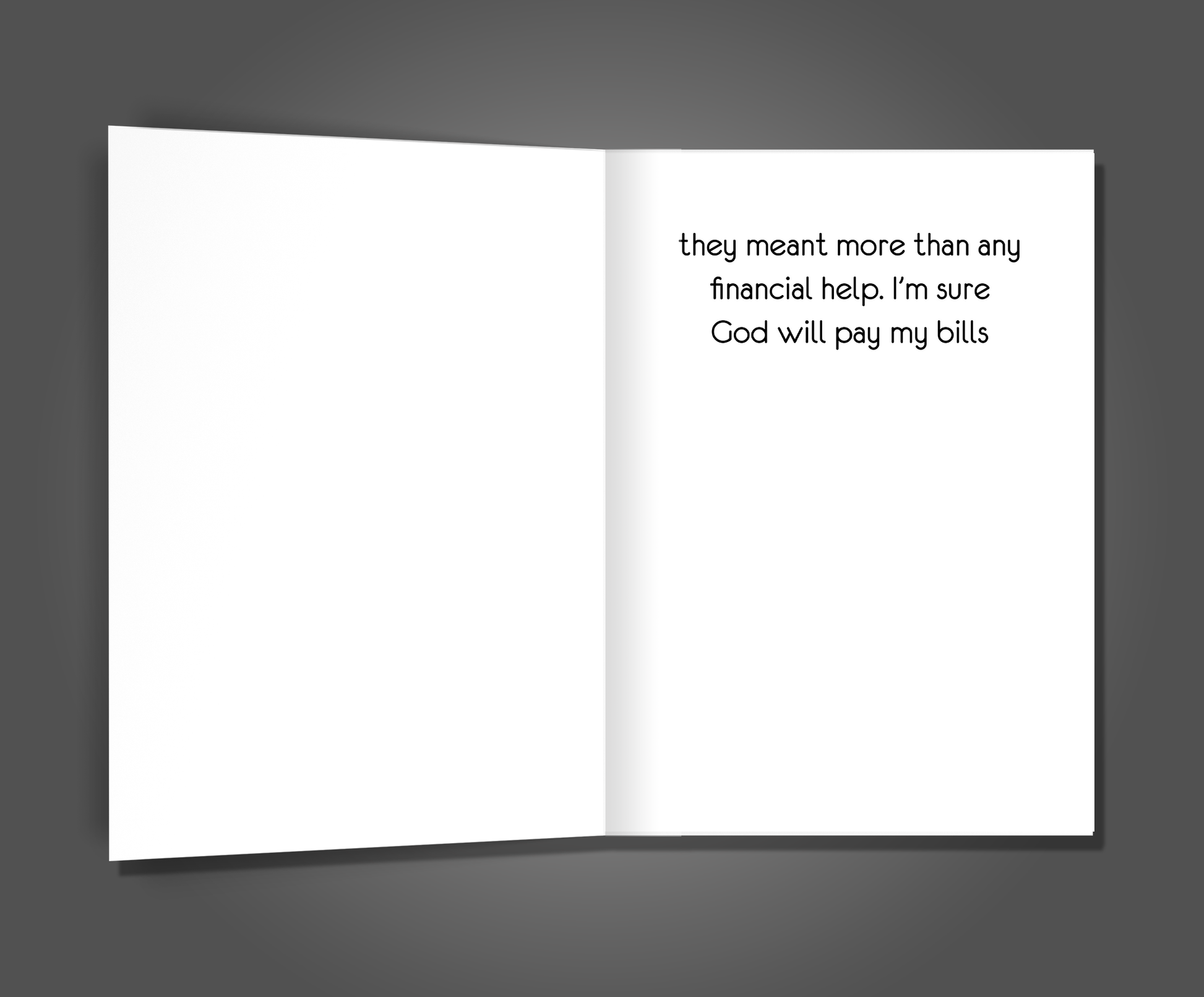 INSIDE WORDING: they meant more than any financial help. I'm sure God will pay my bills
