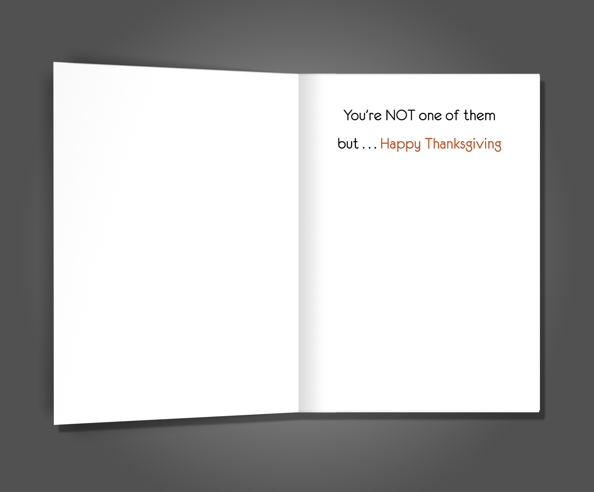 INSIDE WORDING:Â You're NOT one of them but . . . Happy Thanksgiving